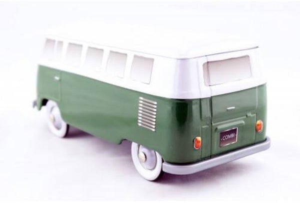 Originele VW bewaarblik met Volkswagen-licentie, een reproductie van de VW T1 combi