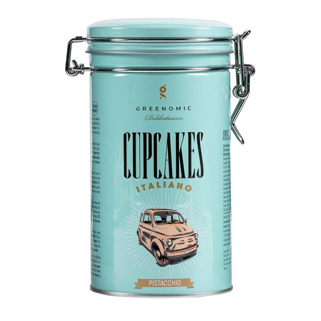Ontdek onze heerlijke cupcakes gevuld met een onweerstaanbare pistachecrème. De vulling betovert met zijn intense smaak en bevat zowel pistachenoten als geroosterde pistachenoten afgerond met delicate aroma's. De cupcakes zitten in een mooi blik met Italiaanse afbeelding en beugelsluiting.