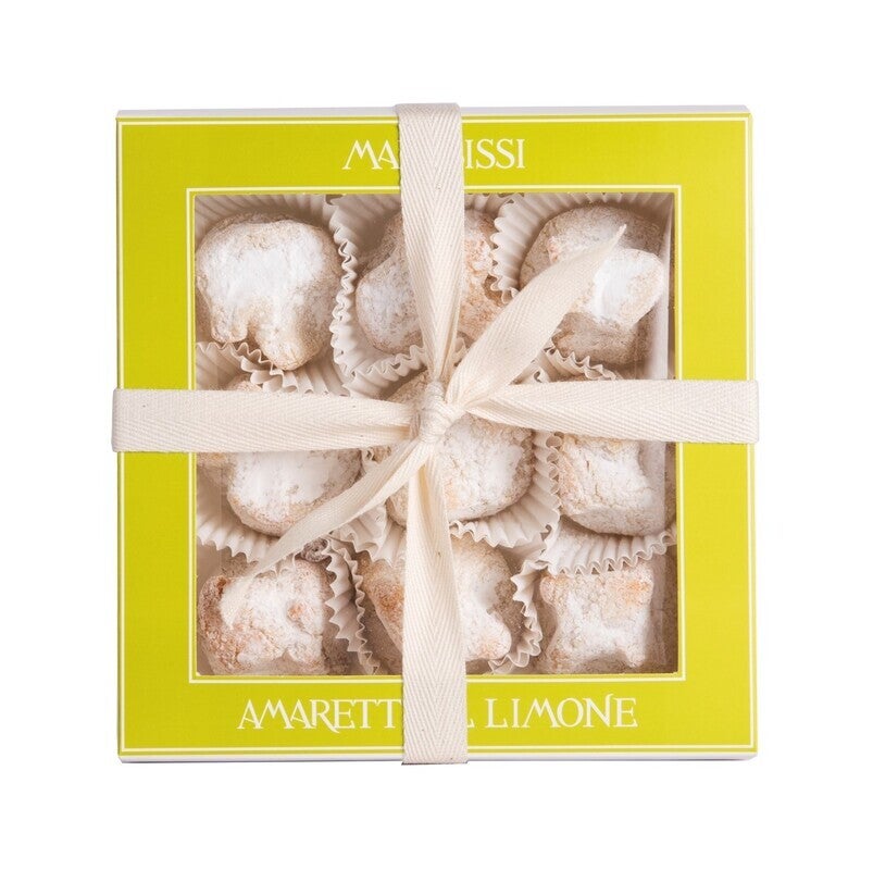 Ambachtelijke Italiaanse Amaretti koekjes met citroen. Verpakt in leuke geschenkdoos.