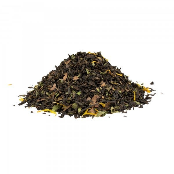 Ingrediënten: zwarte theemengsel* (China), zwarte thee Assam* (India), cacaoschil*, natuurlijke cacao-bitteralmondsmaak, groenemuntblaadjes*, zwarte thee Darjeeling* (India), cacaopoeder*, pepermuntbladeren*, tonkaboon*, goudsbloembloesems*, muntolie. *gecertificeerd biologisch